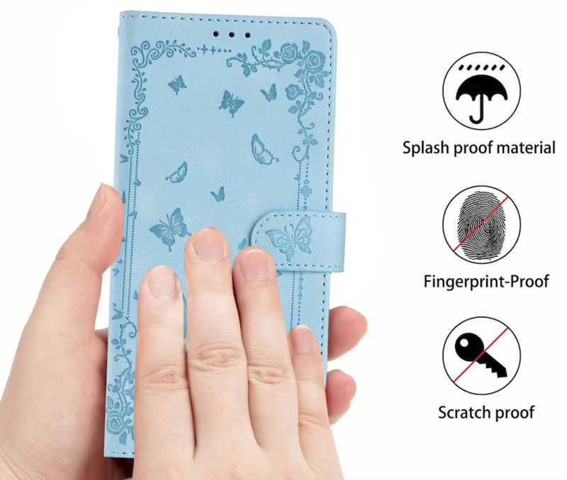 Dit leuke vlinders in boek-stijl etui beschermt uw smartphone perfect tegen krassen en andere beschadigingen. Ideaal voor een goede bescherming bij dagelijks gebruik en met een stijlvol vlinder reliëf-motief. Met handige vakjes voor 3 pasjes en een vakje voor wat geld of visitekaartjes.