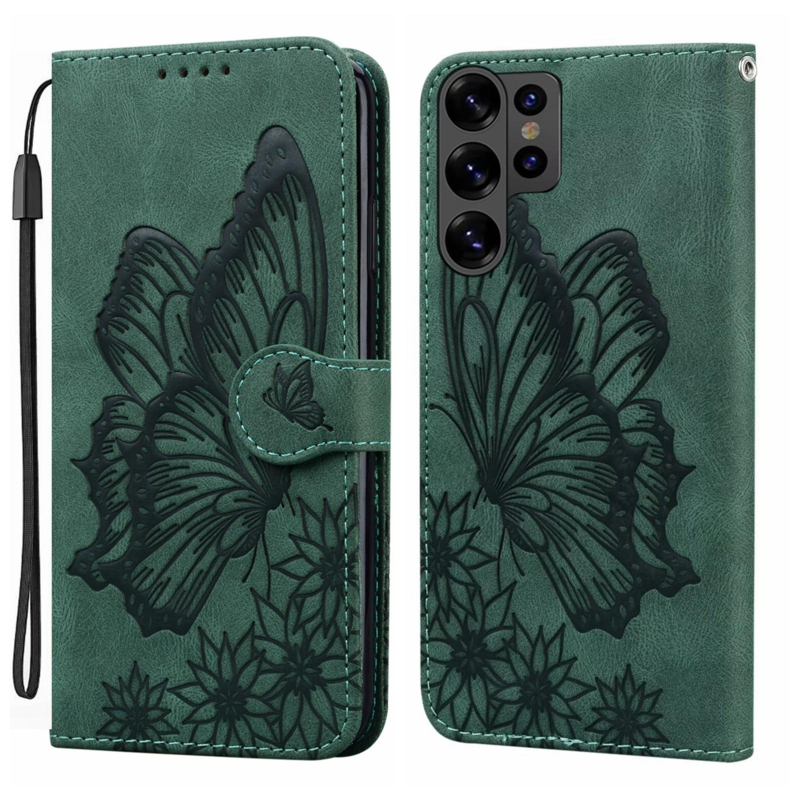 BoekCover Etui Hoes voor Samsung Galaxy S26 ULTRA - Groen - Vlinder - Reliëf
